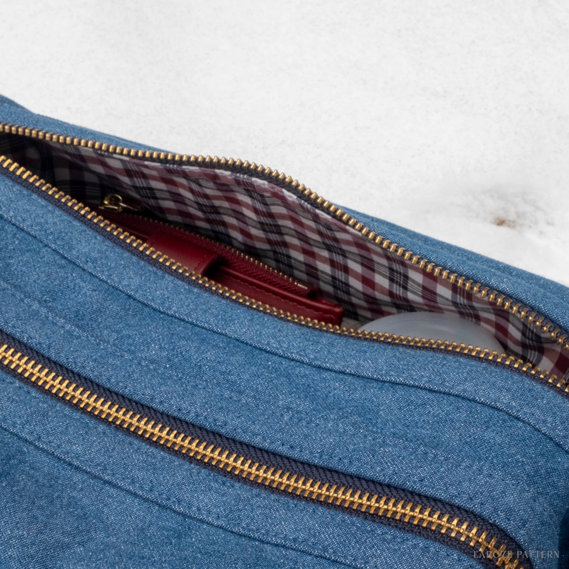 Le patron de couture est un sac bandoulière minimaliste inspiré de la forme d’une trousse.